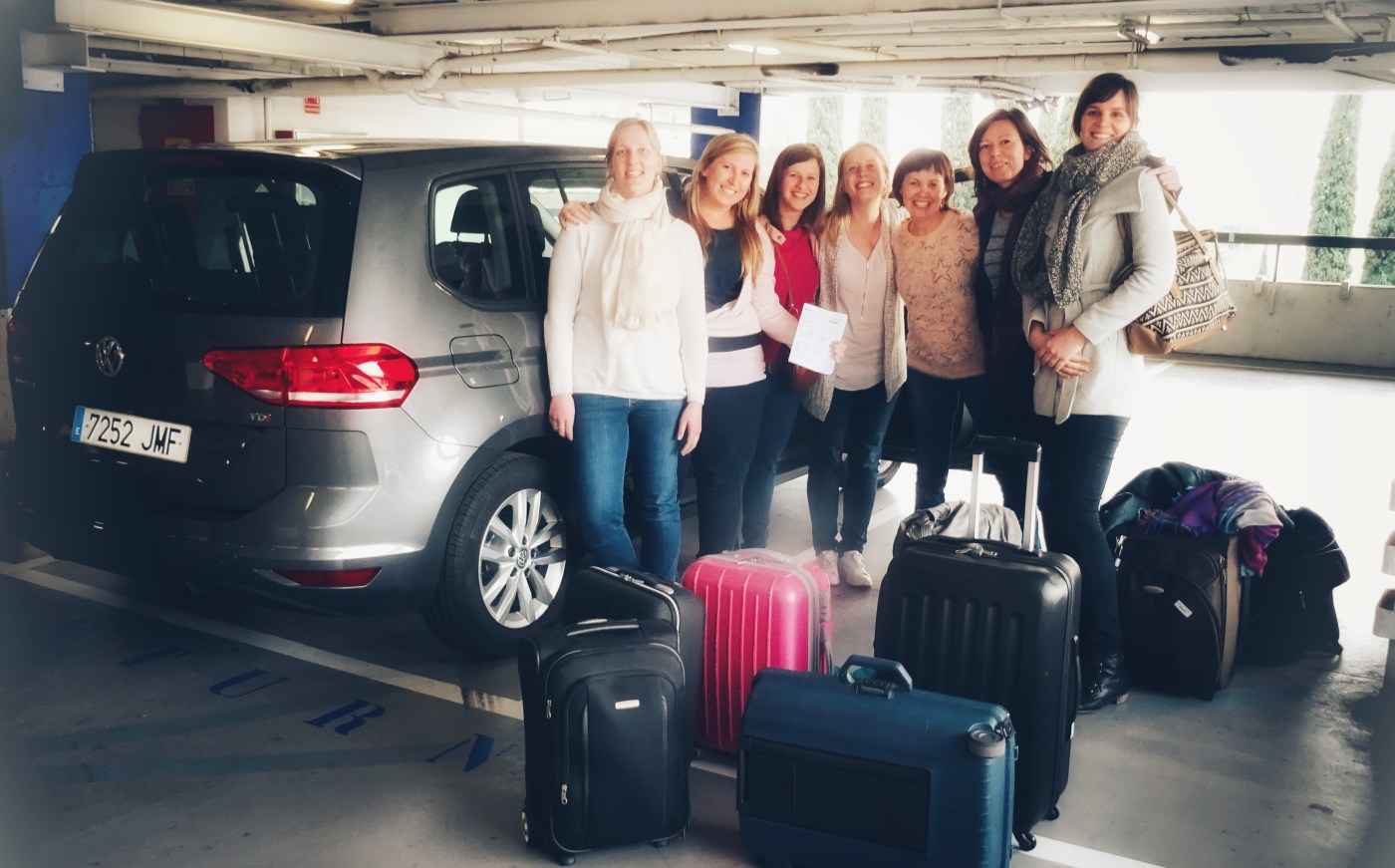 Wij wilden maar één ding, zo snel mogelijk thuis geraken. En dus sloten wij, mijn travel sister Lesley en ik, een pact met vijf voormalige chirovriendinnen die vlak voor ons stonden aan te schuiven. Zo’n chirovrouwen weten van aanpakken. En er ontstond een sisterhood daar in de wachtrij vol radeloze mensen terwijl een sensatiebeluste cameraploeg rond ons heen zwermde. Enige online research bracht ons bij een vlucht die de volgende dag uit Barcelona zou vertrekken richting Oostende. We wisten de laatste plaatsen te bemachtigen. En toen huurden wij de grootste auto die we konden vinden en kropen er met 7 vrouwen en 7 koffers in.