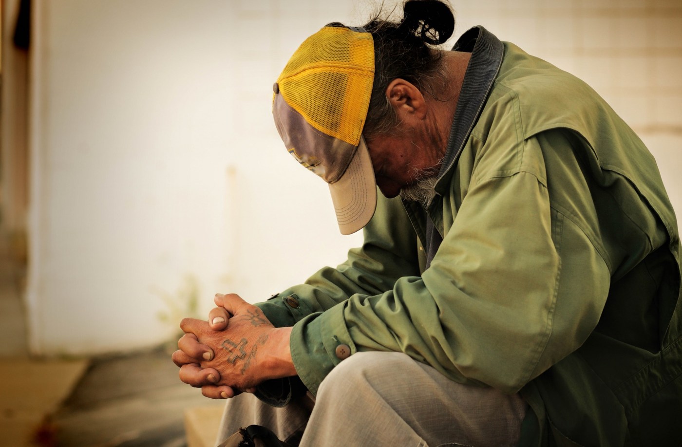 Zou het wennen dat haast niemand je nog in de ogen kijkt? Wat bracht hem daar op die troosteloze plek langs razend verkeer?