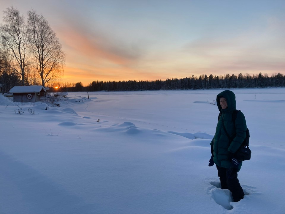 Sneeuw knispert onder haar voeten en glinstert in het licht van de zon. Ze komt uit Duitsland en heeft net haar intrek genomen in een dorp in Zweeds Lapland. Een jaar lang zal ze leven volgens de seizoenen, dicht bij de natuur. Berni heet ze. We moeten een jaar of 18 geweest zijn toen we bevriend werden en lange brieven schreven over onze dromen en verwachtingen. Het verbaast me niets dat ze nu helemaal alleen naar deze uithoek getrokken is, om te exploreren en te schrijven. In een YouTube video toont ze haar nieuwe leefomgeving. Boven haar huis danst het groene noorderlicht in de poolnacht. Het daglicht is schaars, maar veel helderder dan het vale winterlicht in haar thuisstad. ‘De stilte, hoor je de stilte?’ fluistert ze te midden van een eindeloze sneeuwvlakte. De takken van de bomen buigen onder het gewicht van dikke pakken sneeuw.