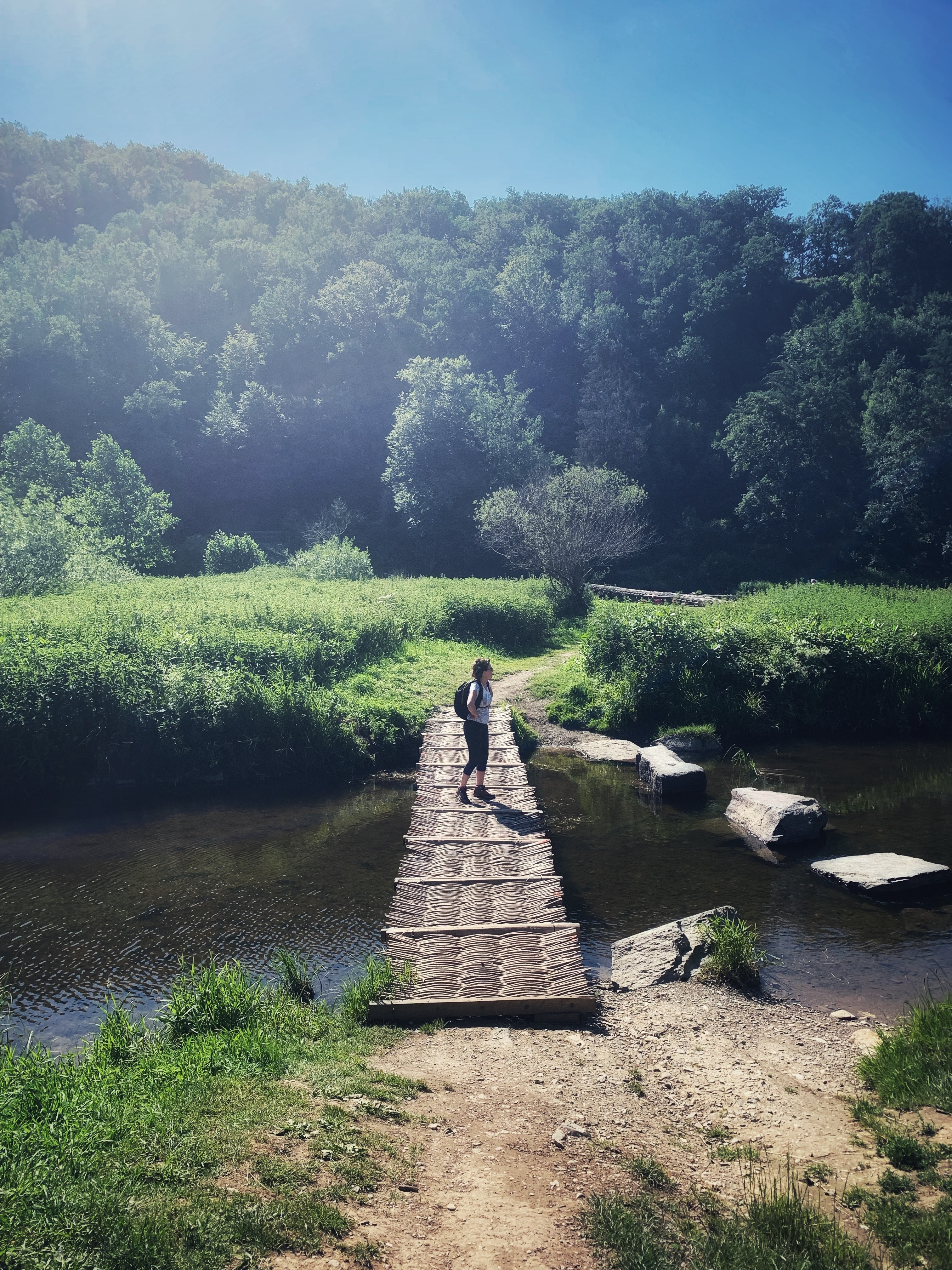 Met de Semois als gids wandelen wij, drie vriendinnen, door schijnbaar eindeloze valleien. Langs kleine dorpen meanderen we, samen met de rivier. Soms is het water zo dichtbij dat we er onze vermoeide voeten in zouden kunnen baden. Dan weer worden we van de stroom gescheiden door dichtbegroeide oevers. Soms graaien prikkerige braamstruiken en netels naar onze armen en benen, maar meestal is het pad als een zachte metgezel, met armen breed genoeg voor ons drie. Hier en daar staan oude tabaksschuren langs de route, als stille getuigen van het verleden. Het plan was om de Semois te volgen via la Grande Randonnée, maar de GR16 toont zich al op dag één onberekenbaar, hoog in de bossen boven de vallei, met omgevallen bomen op het steile pad, een klauterpartij over boomstammen en dwars door een neergeslagen boomkruin.