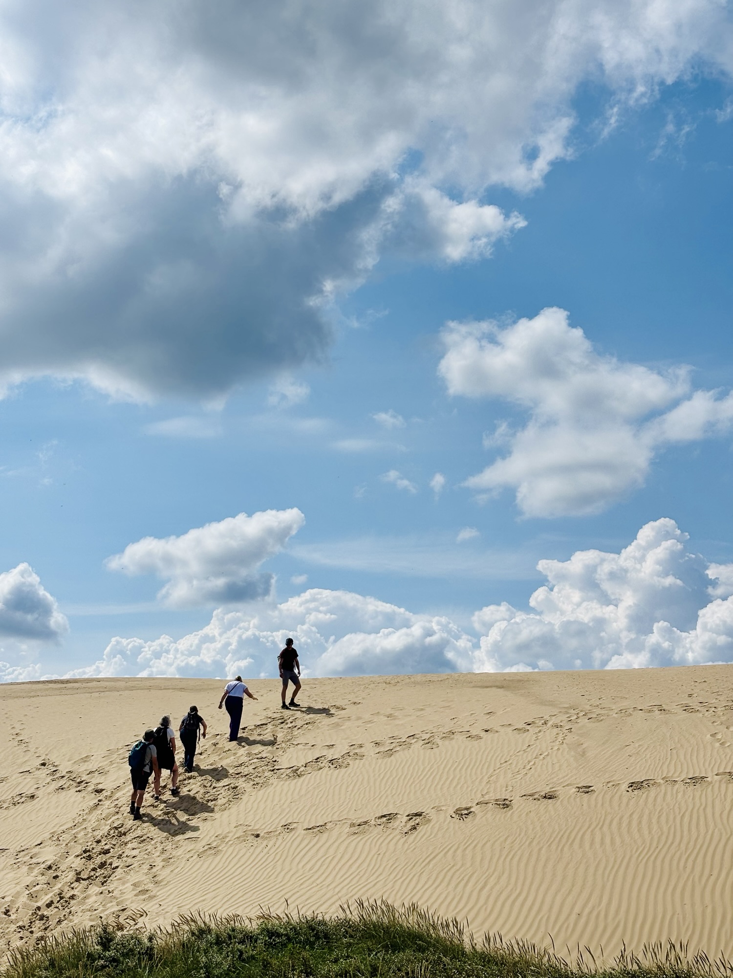 Onze voetstappen zijn alweer verdwenen, opgegaan in het stuivende zand. Alles verandert, niets blijft — dat fluisterden de duinen, de zeeën en de wind ons telkens opnieuw. Wat overblijft, is het nu waarin we daar waren en de herinneringen die we meenemen.