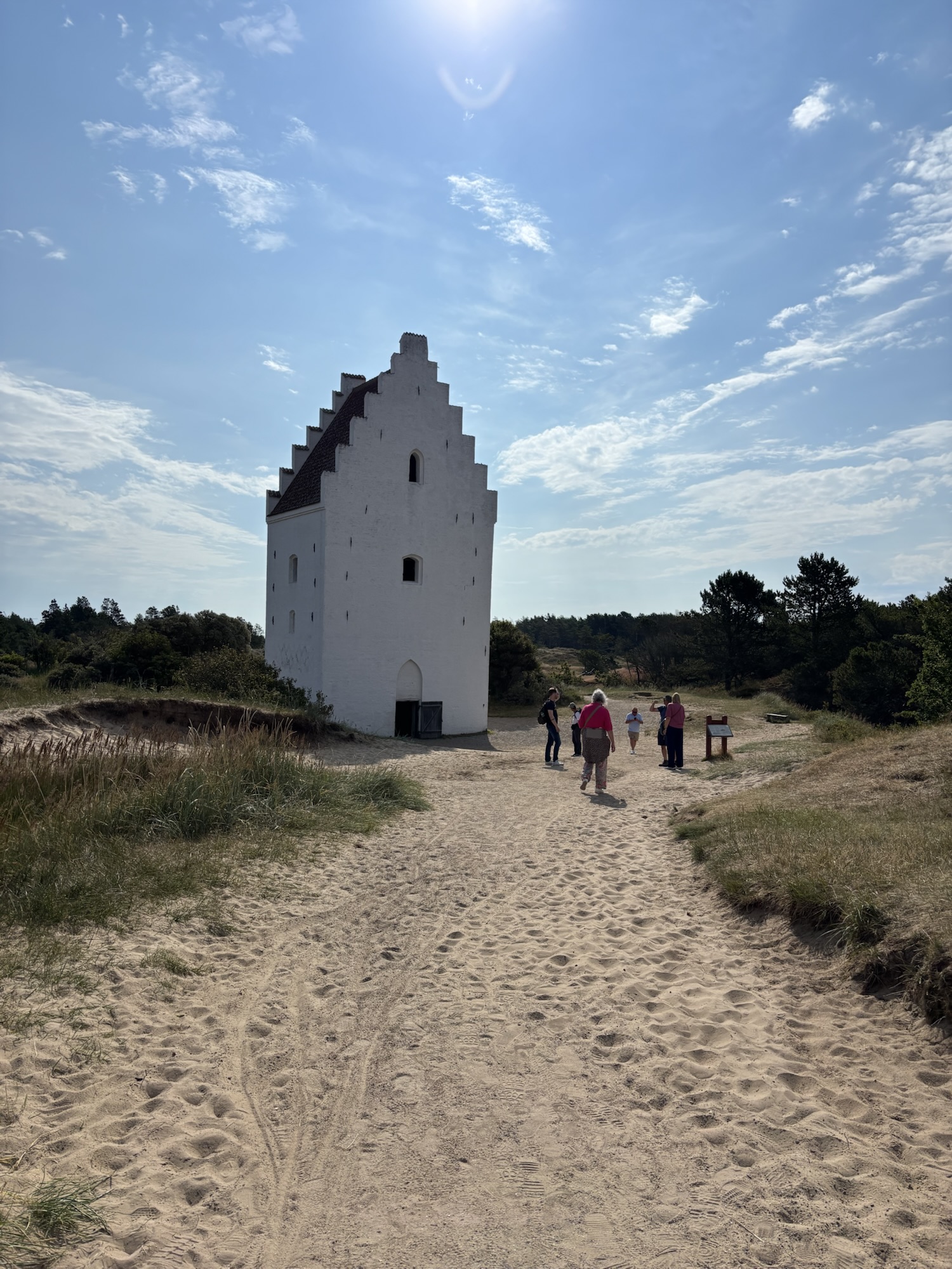 De duinen rondom Skagen zijn al even beweeglijk als het water. De ‘wandelende duinen’ verplaatsen zich tot 15 meter per jaar en ontzien niets of niemand op hun weg. Zo is een kerktoren alles wat er vandaag overblijft van de Tilsandede Kirke / Verzande Kerk. Eeuwenlang groeven de kerkgangers zich een weg door het zand om de zondagse preek te horen, tot de kerk in 1775 ontoegankelijk werd verklaard. De toren steekt uit boven het stuivende zand, als symbool voor al die andere huizen, boerderijen, vuurtorens en kerken die de strijd tegen zee, wind en duinen niet haalden.