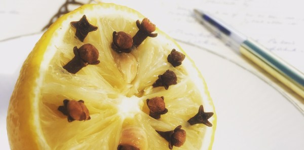 Laatzomerdag. Het soort dag waarvan we op kille, grijze herfstdagen alleen maar kunnen dromen. De frisse geur van een opengesneden citroen mengt zich met het zoet-pikante aroma van de steeltjes kruidnagel in het vruchtvlees. Het zou een natuurlijk afweermiddel tegen wespen moeten zijn, maar de kleine ambetanteriken trekken zich daar weinig van aan. Met één... Lees verder →